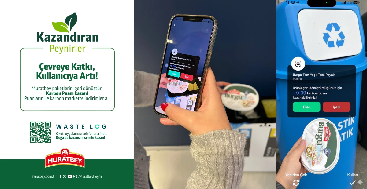 Muratbey, geri dönüşüm alışkanlıklarının ödüllendirildiği Waste Log mobil uygulaması üzerinden “Kazandıran Peynirler” projesini hayata geçirdi. Proje, gıda sektöründe tüketim sonrası atık yönetimini merkeze alan ilk örneklerden biri olma özelliği taşıyor. Kullanıcılar, Muratbey ambalajlarını geri dönüşüme atıp fotoğraf yükleyerek sistemde doğrulama aldığında karbon puanı kazanıyor. Kazanılan puanlar, indirim veya hediye kartı olarak kullanılabiliyor.