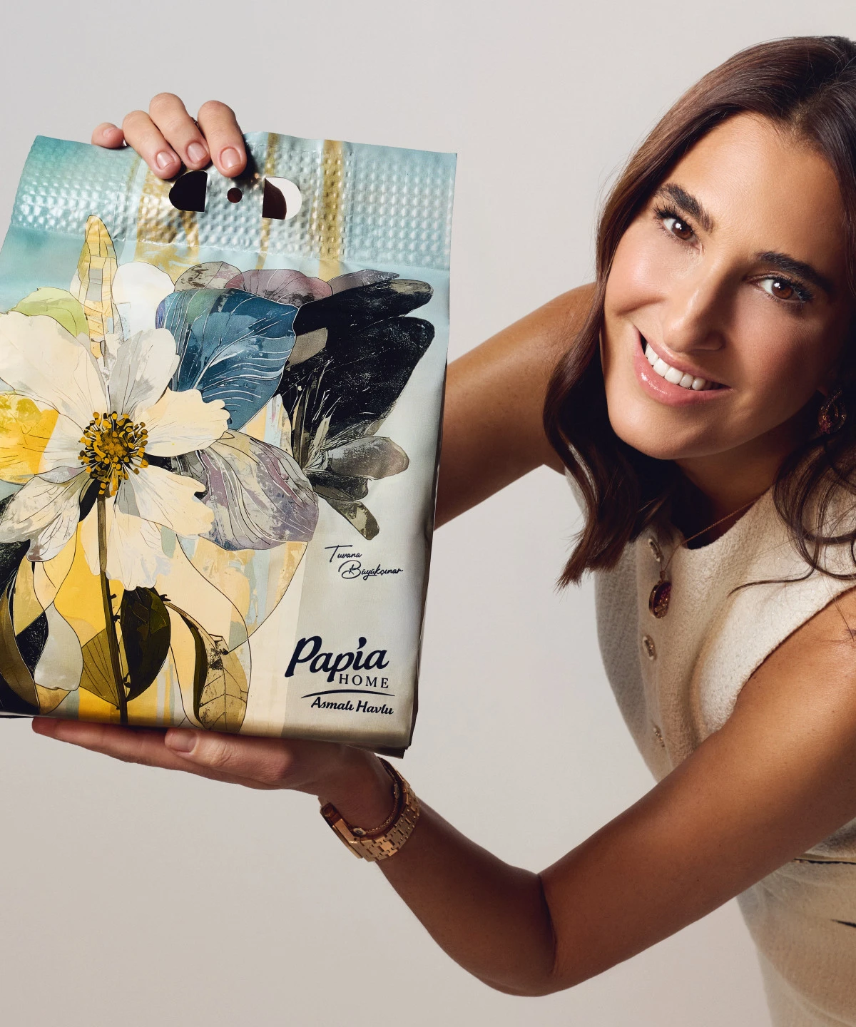 “Çünkü eviniz daha iyisine layık” mottosuyla yepyeni bir bakış açısı getiren Papia Home Koleksiyonu tasarımcı Tuvana Büyükçınar’ın imzasını taşıyor. Şıklığı ve fonksiyonelliği bir arada sunan koleksiyon özelinde tasarlanan yeni Papia Home Asmalı Havlu, ihtiyaçtan öte adeta evlerin dekorasyonunu tamamlayan zarif bir tasarım objesi olarak ön plana çıkıyor. Papia Home Asmalı Havlu, tasarımcı Tuvana Büyükçınar imzası taşıyan yenilikçi ürünüyle farklı zevklere hitap eden 5 tasarım alternatifi sunuyor.