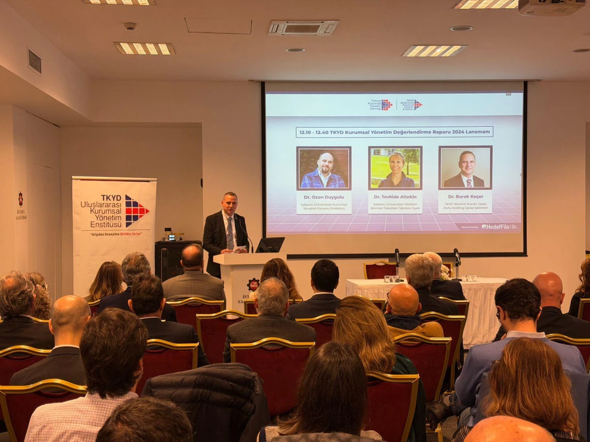 İstanbul Sanayi Odası’nda düzenlenen TKYD Üye Buluşması “Yönetim Kurulu Üyeliği Gelişim Programı” 9. dönem mezuniyet törenine de sahne oldu. TKYD ve Sabancı Üniversitesi Kurumsal Yönetim Forumu iş birliğiyle yürütülen program, Türkiye’de yönetim kurullarının etkinliğini artırmayı, iyi yönetim kültürünü güçlendirmeyi ve şirketlerde sürdürülebilir karar alma süreçlerinin gelişmesine katkı sunmayı amaçlıyor. Program sonunda verilen sertifikalar, Sabancı Üniversitesi Kurumsal Yönetim Forumu ve TKYD imzalı olarak katılımcılara takdim edilirken, program mezunları, kurumsal yönetim alanında yetkinliklerini geliştiren kapsamlı bir eğitim sürecini başarıyla tamamlamaktan duydukları mutluluğu paylaştı.